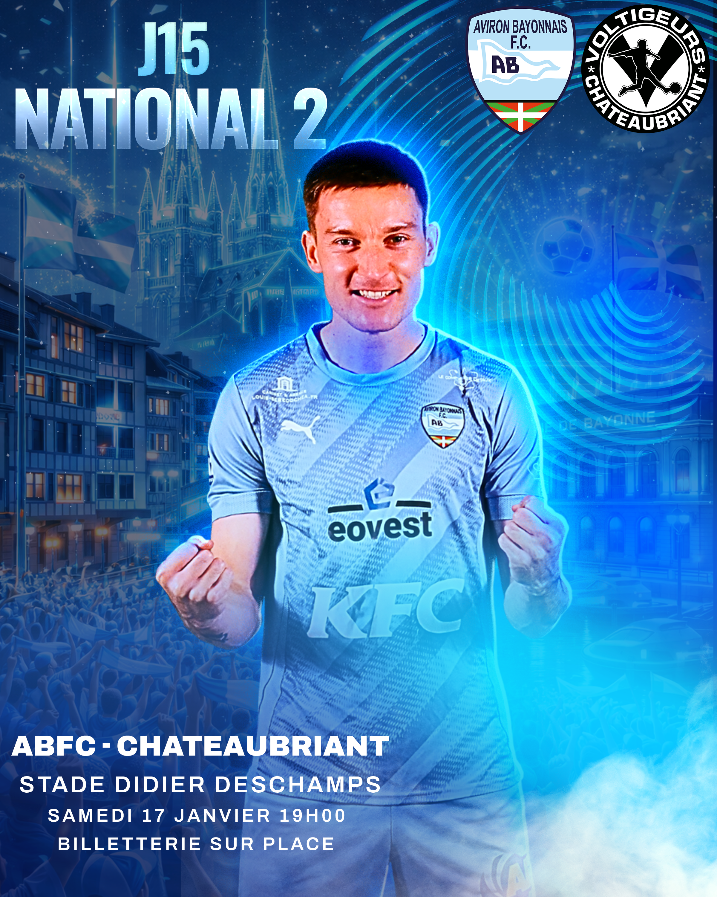 Samedi à 19H00, 15ème journée de National 2 avec la réception de Chateaubriand.